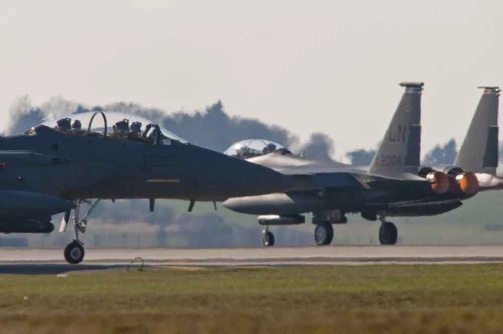 Снимка покажува како ирански беспилотник го избегнува американскиот ловец Ф-15 и успешно погодува објект на британска компанија во северен Ирак.