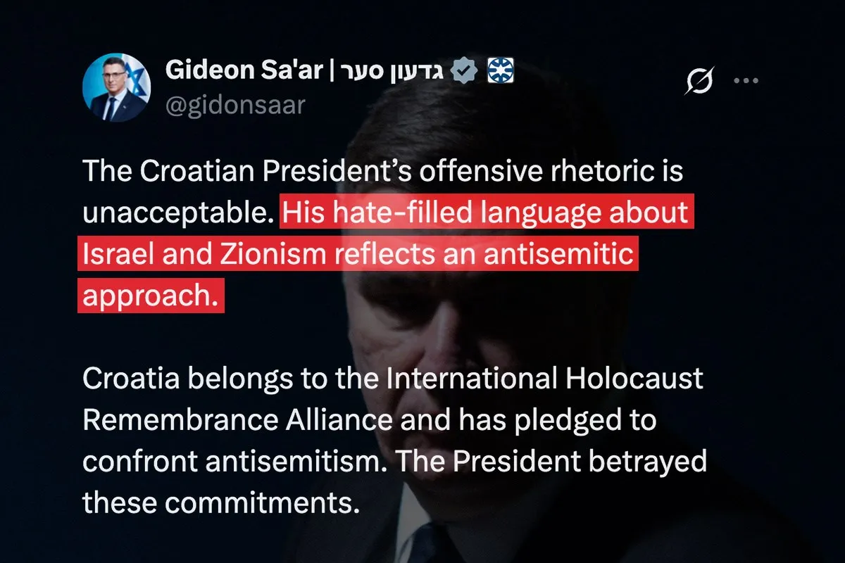 Израелскиот министер за надворешни работи Гидеон Саар остро го критикуваше хрватскиот претседател Зоран Милановиќ, велејќи дека неговите изјави за Израел...